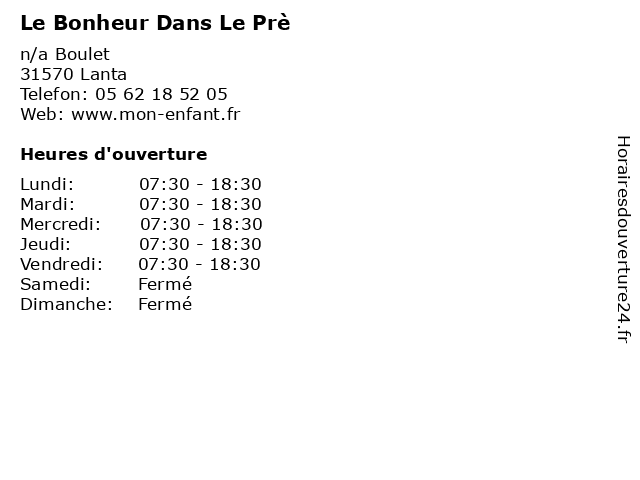 | Samedi | Fermé |