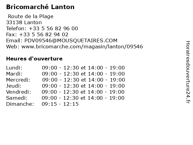Lundi | 09:00-12:30 et 14:00-19:00 |