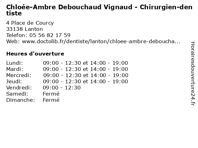 | Lundi | 09:00-12:30 et 14:00-19:00 |
