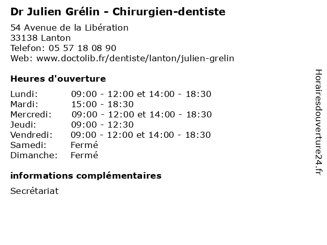 | Lundi | 09:00-12:00 et 14:00-18:30 |