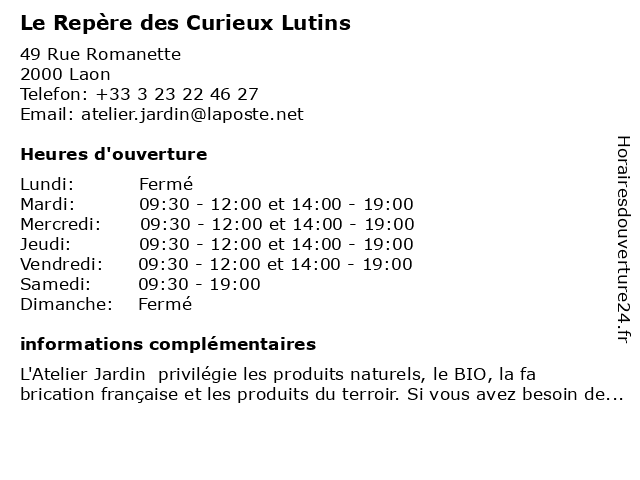 | Mardi | 09:30-12:00 et 14:00-19:00 |