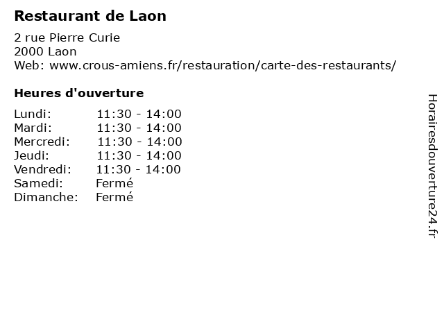 | Lundi | 11:30-14:00 |