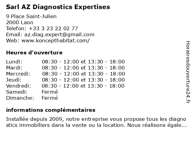 | Lundi | 08:30-12:00 et 13:30-18:00 |