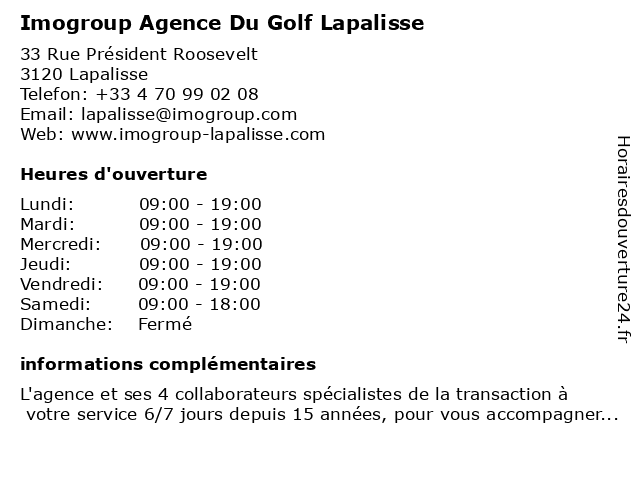 1 Restaurant du Golf (Distance: 21,92 km) 5 Allée Georges Baugnies, 03700 Bellerive-sur-Allier du, golf, restaurant 2 Golf Sporting Club de Vichy - Secrétariat et Pro Shop - Octobre à Avril (Distance: 22,50 km) 1 Allée Georges Baugnies, 03700 Bellerive-sur-Allier avril, club, de, et, golf, octobre, pro, restaurant, secrétariat, shop, sport, sportif, sporting, sports, vichy 3 Golf de Briailles (Distance: 24,31 km) 36 chemin du Château, 03500 Saint-Pourçain-Sur-Sioule briailles, de, golf, parcours, sport, terrain 4 Golf Vichy Forêt De Montpensier (Distance: 27,39 km) Chemin du Cat, 03700 Serbannes de, forêt, golf, montpensier, vichy 5 Green Acres - Imogroup (Distance: 31,29 km) 151 Place du 11 Novembre, 42370 Renaison acres, agency, apartment, green, imogroup, real estate 6 Green Acres - Agence du Golf (Distance: 33,82 km) 2 Rue de Riom, 63310 Randan acres, agence, agency, apartment, du, golf, green, real estate |