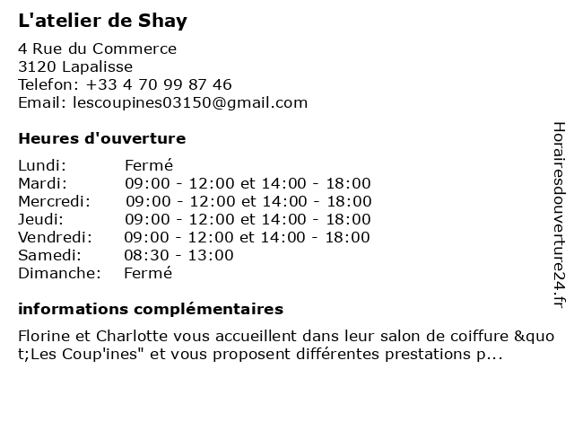 Termes de recherche pour L'atelier de Shay:de, l'atelier, shay |
