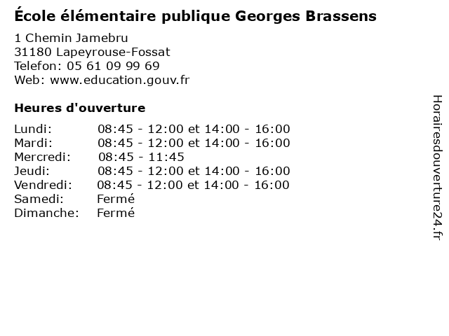1 École élémentaire publique Georges Brassens (Distance: 12,39 km) 2 Avenue Ségusino, 31790 Saint Jory brassens, cours, education, georges, publique, services, école, élémentaire 2 École maternelle publique Georges Brassens (Distance: 0,00 km) 1 Chemin Jamebru, 31180 Lapeyrouse-Fossat brassens, cours, education, georges, maternelle, publique, services, école 3 École élémentaire publique Marcel Pagnol (Distance: 2,34 km) . Chemin du Stade, 31180 Castelmaurou cours, marcel, pagnol, publique, services, école, élémentaire 4 Claverie Olivier Georges Joachim (Distance: 2,99 km) Claverie o, 31140 Saint-Loup-Cammas claverie, georges, joachim, olivier, restaurants 5 École élémentaire publique Centre (Distance: 3,57 km) . Place François Mitterrand, 31240 Saint-Jean centre, cours, publique, servicios, école, élémentaire 6 Tragne Georges (Distance: 6,44 km) 16 Rue Jean Moulin, 31780 Castelginest boucheries, georges, poissonneries, tragne |