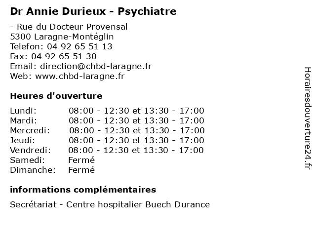 | Mercredi | 08:00-12:30 et 13:30-17:00 |