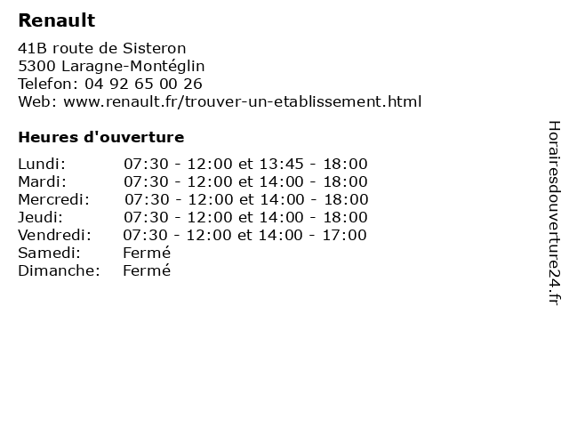1 Espace Automobile Sisteronnais - Renault (Distance: 17,94 km) 6 route de Marseille, 04200 Sisteron automobile, espace, neuves, occasion, renault, sisteronnais, vente, voitures 2 Citroën - sarl Trezzini Auto (Distance: 0,00 km) 66 route de Sisteron, 05300 Laragne-Montéglin atelier, auto, carrosserie, citroën, control, garage, pneus, réparation, sarl, trezzini 3 Pompes Funèbres et Marbrerie CARTIER - PFG LARAGNE-MONTEGLIN (Distance: 0,10 km) 7 Rue de L Hôtel de ville, 05300 Laragne-Montéglin avis de décès, cartier, crémation, entretien de sépulture, et, fleurs deuil, formalités après obsèques, funèbres, inhumation, laragne, marbrerie, monteglin, monument funéraire, pfg, pompes, pompes funèbres, prévoyance obsèques 4 JB Services - Copra (Distance: 0,11 km) 10 rue de l'Hôtel de Ville, 05300 Laragne-Montéglin copra, image, jb, réparation, services, son, vente, électricité, électroménager 5 Orpi - Agence Garcin Immobilier (Distance: 0,19 km) 50 Place de la Fontaine, 05300 Laragne-Monteglin achat, ad, agence, appartement, garcin, gestion, immobilier, immobiliere, location, maison, orpi, vente 6 Précisium (Distance: 0,20 km) . Avenue de Provence, 05300 Laragne-Montéglin carrosserie, garage, précisium, services |