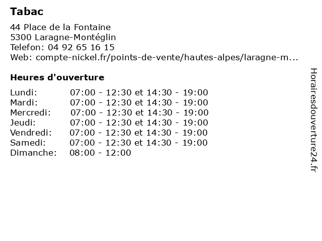 | Mardi | 07:00-12:30 et 14:30-19:00 |