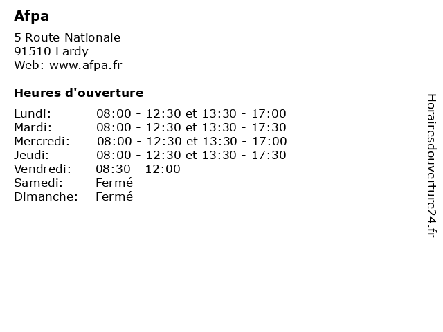 | Mardi | 08:00-12:30 et 13:30-17:30 |