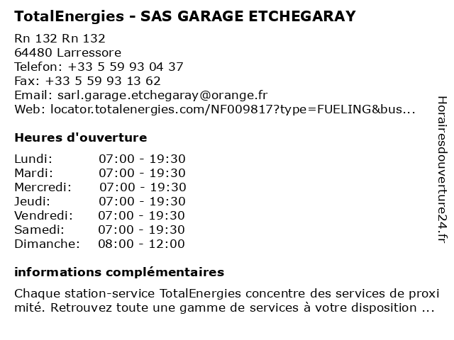 Termes de recherche pour TotalEnergies - SAS GARAGE ETCHEGARAY:garage, sas, total, gas station, station service, etchegaray, tankstelle, totalenergies |