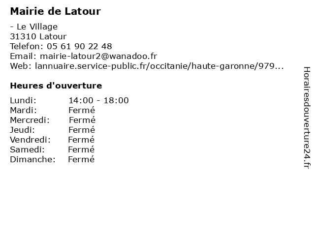 Termes de recherche pour Mairie de Latour:de, administration, mairie, assoc public, latour |
