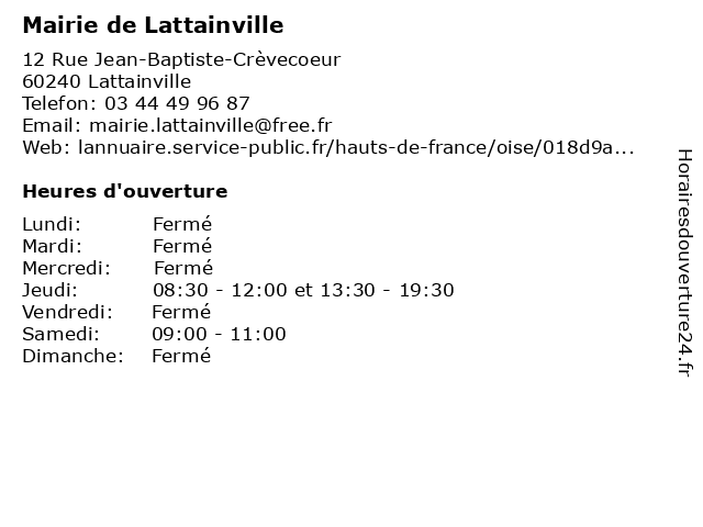 Termes de recherche pour Mairie de Lattainville:de, administration, mairie, assoc public, lattainville |