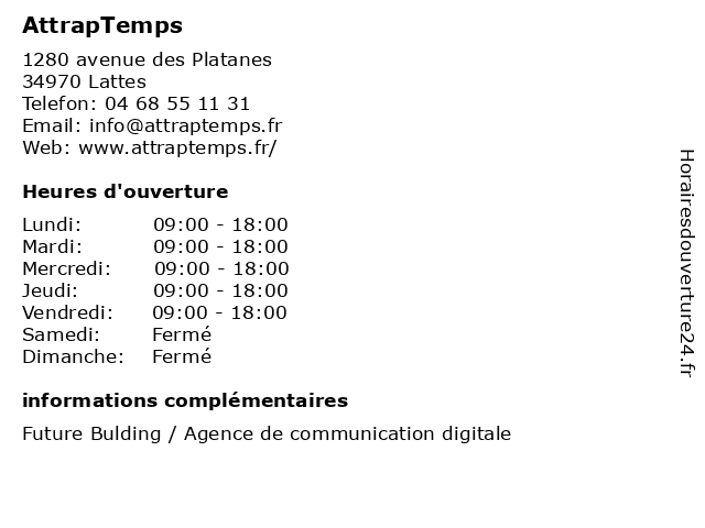 | Lundi | 09:00-18:00 |