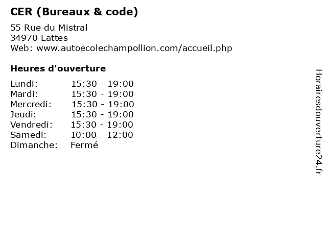 Termes de recherche pour CER (Bureaux & code):services, code, ecole, bureaux, permis, routière, cer |