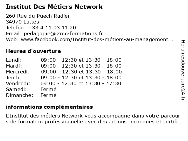 | Lundi | 09:00-12:30 et 13:30-18:00 |