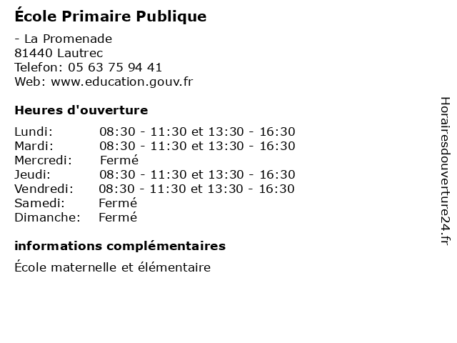 | Mardi | 08:30-11:30 et 13:30-16:30 |