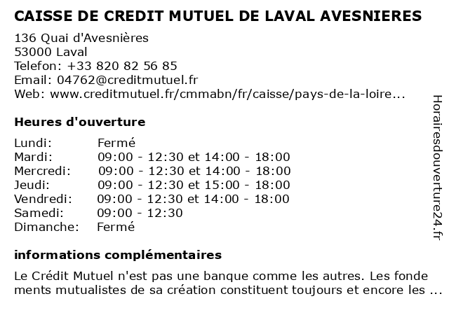 Termes de recherche pour CAISSE DE CREDIT MUTUEL DE LAVAL AVESNIERES:de, laval, crédit, mutuel, caisse, avesnieres |