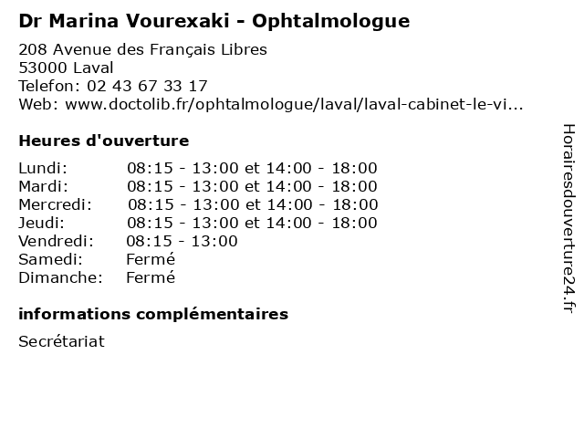 | Lundi | 08:15-13:00 et 14:00-18:00 |