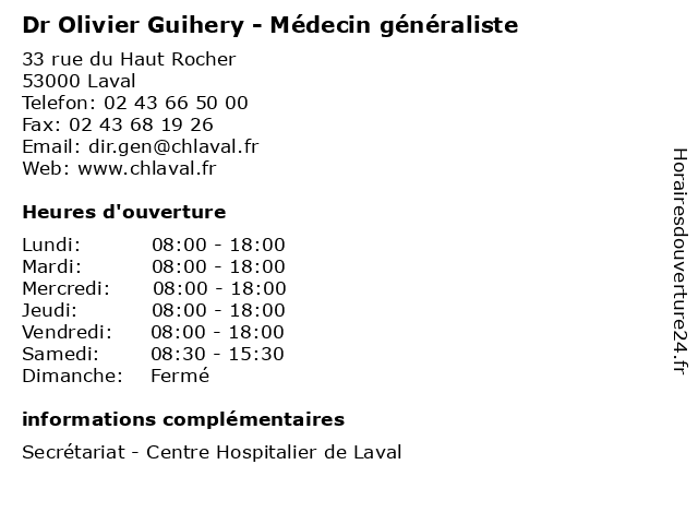 1 Dr Olivier Berche - Médecin généraliste (Distance: 0,00 km) 33 rue du Haut Rocher, 53000 Laval berche, consultation, docteur, dr, généraliste, med, médecin, médecine, olivier, traitement 2 Dr Olivier Pajot - Ophtalmologue (Distance: 0,26 km) 17 Rue Messager, 53000 Laval docteur, dr, médecin, olivier, ophtalmologie, ophtalmologue, pajot 3 Maître Olivier Bures - Avocat (Distance: 0,61 km) 10 roquet de Patience, 53000 Laval avocat, avocats, bures, cabinet, conseils, contentieux, juridique, justice, litiges, maître, olivier, services 4 Dr Olivier Berthaud - Radiologue (Distance: 0,92 km) 4 Avenue des Français Libres, 53000 Laval berthaud, diagnostique, dr, imagerie, olivier, radiologie, radiologue, thérapeutique 5 Dr Olivier Piveteau - Médecin généraliste (Distance: 1,13 km) 10 Rue Sainte-Anne, 53000 Laval docteur, dr, generaliste, généraliste, medecin, médecin, olivier, piveteau, soins 6 Dr Olivier Coutterez - Médecin généraliste (Distance: 3,57 km) 14 Rue du Haut Bourg, 53940 Saint-Berthevin coutterez, docteur, dr, généraliste, médecin, olivier, santé |