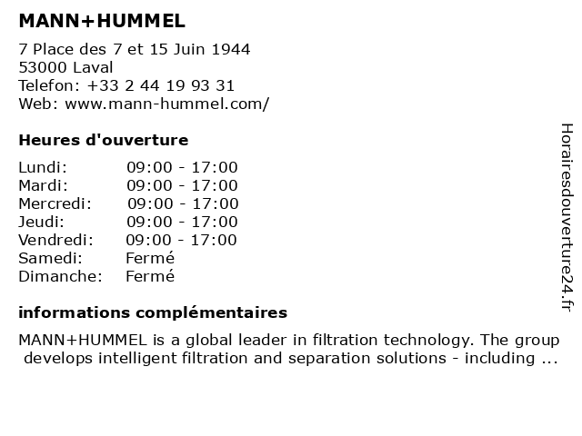 Horaires d'ouverture |