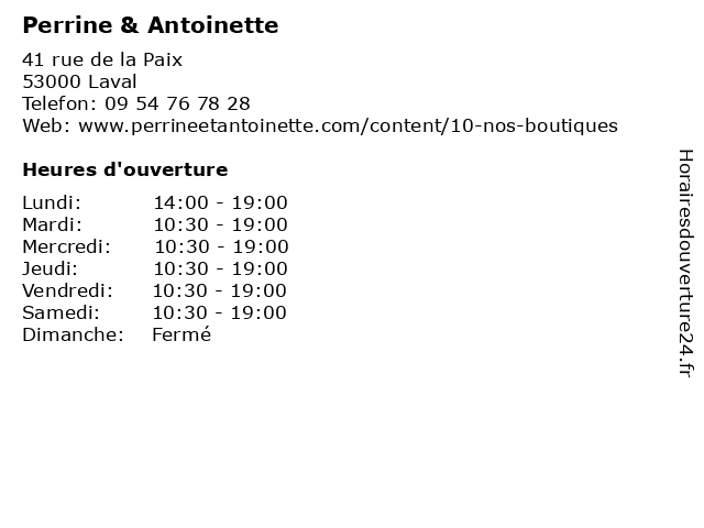 | Mercredi | 10:30-19:00 |