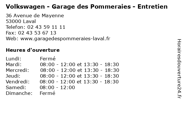 | Mercredi | 08:00-12:00 et 13:30-18:30 |