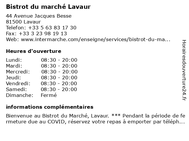 1 Bistrot du marché Lavaur (Distance: 0,01 km) 44 Avenue Jacques Besse, 81500 Lavaur bistrot, du, lavaur, marché 2 Bistrot du marché Lavaur (Distance: 0,02 km) 44 Avenue Jacques Besse, 81500 Lavaur bistrot, du, lavaur, marché 3 Bistrot du marché Lavaur (Distance: 0,02 km) 44 Avenue Jacques Besse, 81500 Lavaur bistrot, du, lavaur, marché 4 Bistrot du marché Lavaur (Distance: 0,02 km) 44 Avenue Jacques Besse, 81500 Lavaur bistrot, du, lavaur, marché 5 Bistrot du marché Lavaur (Distance: 0,02 km) 44 Avenue Jacques Besse, 81500 Lavaur bistrot, du, lavaur, marché 6 Bistrot du marché Lavaur (Distance: 0,02 km) 44 Avenue Jacques Besse, 81500 Lavaur bistrot, du, lavaur, marché |