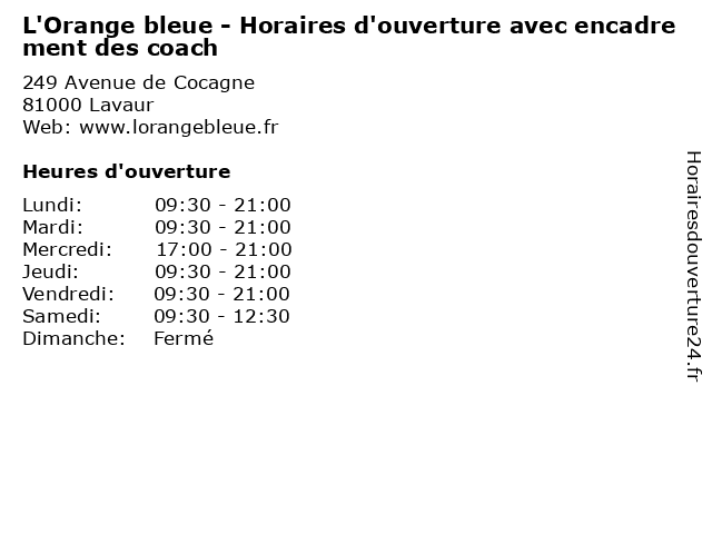 Termes de recherche pour L'Orange bleue - Horaires d'ouverture avec encadrement des coach:des, fitness, d'ouverture, horaires, bleue, sports, l'orange, coach, avec, outdoor, health, encadrement, exercise, physical activities |