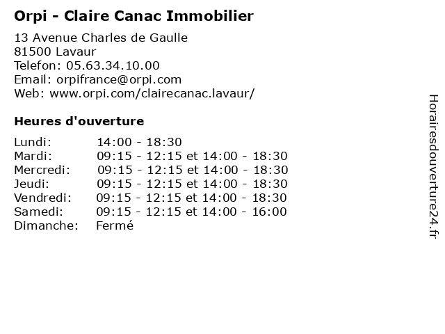 | Mardi | 09:15-12:15 et 14:00-18:30 |