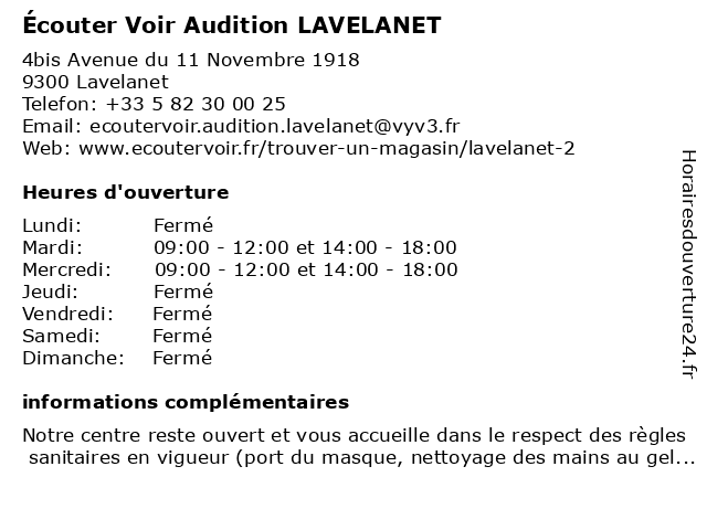 | Samedi | Fermé |