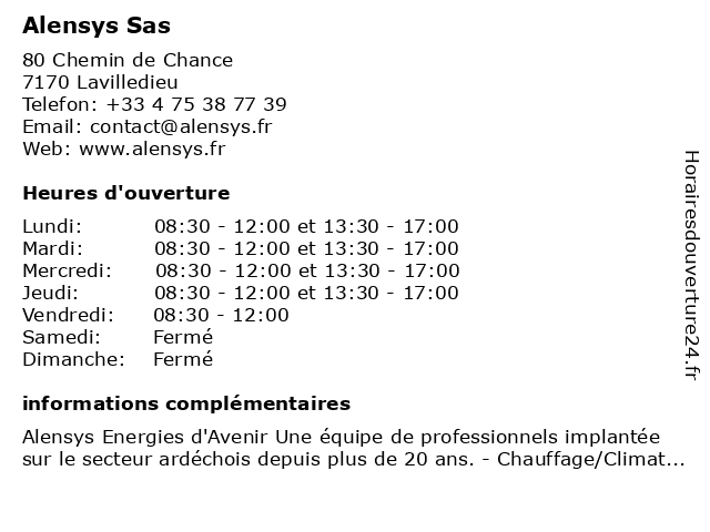 | Lundi | 08:30-12:00 et 13:30-17:00 |