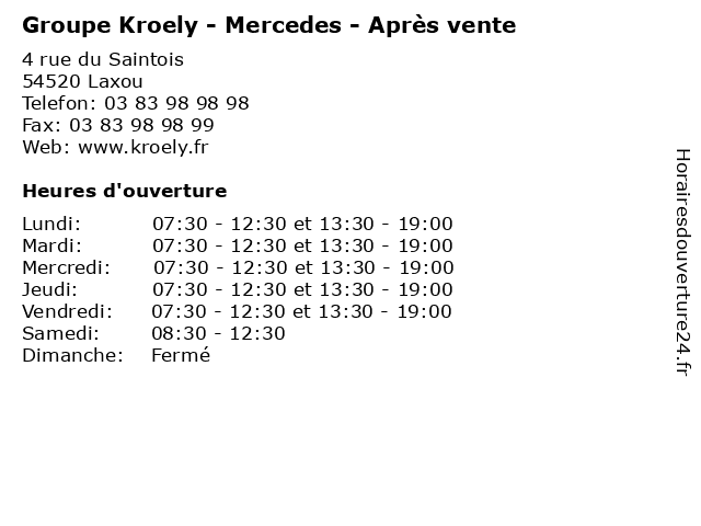 | Mercredi | 07:30-12:30 et 13:30-19:00 |