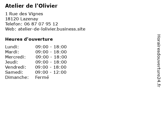 | Dimanche | Fermé |