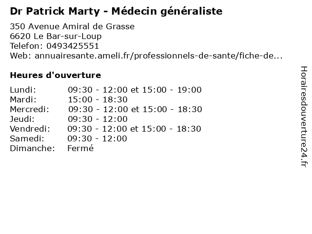 | Mercredi | 09:30-12:00 et 15:00-18:30 |