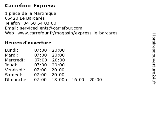1 Carrefour Express (Distance: 13,20 km) 1 Rue Kleber, 66600 Rivesaltes alimentation, carrefour, express, magasin discount, market, supermarché 2 Carrefour Express (Distance: 15,60 km) 3 rue des Primevères, 66000 Perpignan carrefour, express, le maxidiscompte, les marchés, les supermarchés, magasins de proximité 3 Carrefour Express (Distance: 16,51 km) - Avenue du 19 mars 1962, 66330 Cabestany alimentation, carrefour, express, magasin discount, market, supermarché 4 Carrefour Express (Distance: 16,81 km) - rue du Vieux Lavoir, 66570 Saint-Nazaire-Canet carrefour, express, le maxidiscompte, les marchés, les supermarchés, magasins de proximité 5 Esso Express (Distance: 3,85 km) - Lieu dit Cap de Front, 11370 Port-Leucate carburant, esso, express, services, station, véhicules 6 |