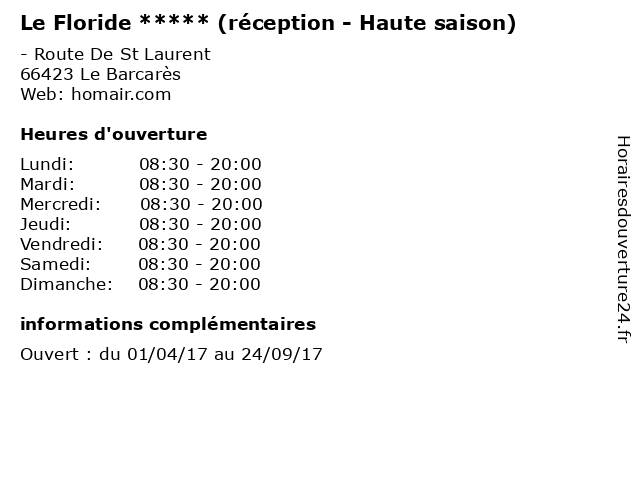 Termes de recherche pour Le Floride ***** (réception - Haute saison):le, camping, saison, location, tourisme, réception, floride, haute, centre de vacances, hébergements, ***** |
