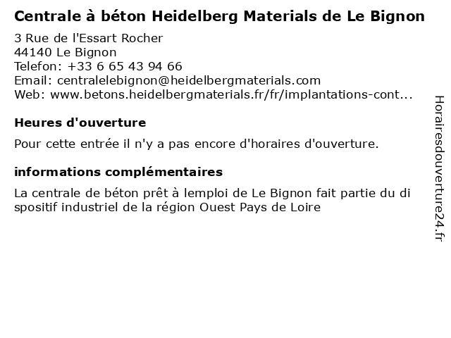 | Appeler Centrale à béton Heidelberg Materials de Le Bignon | |