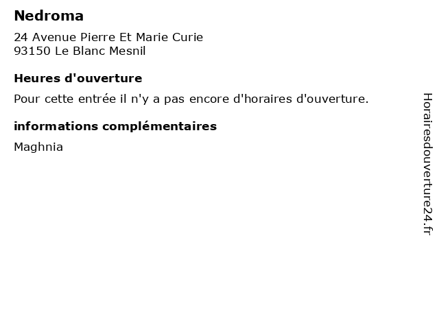 3 Boucherie Ifri (Distance: 0,07 km) 15 Av Pierre Et Marie Curie, 93150 Le Blanc Mesnil boucherie, boucheries, ifri, poissonneries 5 Reunion De Poissons (Distance: 1,30 km) 24 Avenue Gambetta, 93150 Le Blanc Mesnil boucheries, poissonneries, poissons, reunion 6 La Boucherie Du Parc (Distance: 2,21 km) Centre Commercial Lotissement 113, 93420 Villepinte boucherie, boucheries, parc, poissonneries |