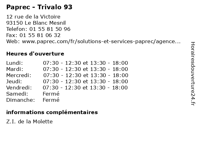 | Lundi | 07:30-12:30 et 13:30-18:00 |