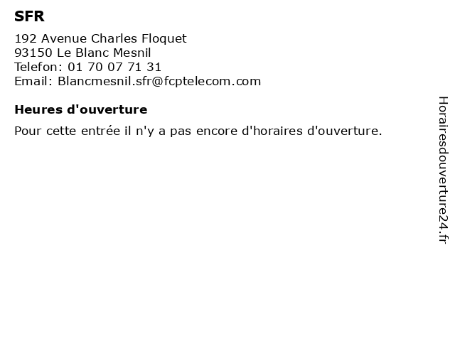 1 SFR (Distance: 5,88 km) . Route des petits ponts, 93270 Sevran beaute, chaussures, decoration, mode enfants, mode femme, mode homme, restauration, service, sfr, sport, telephonie 2 SFR (Distance: 6,50 km) 23 Rue Madeleine Vionnet, 93300 Aubervilliers alimentation, beauté & sante, culture & loisirs, enfants, high-tech, maison & déco, mode, restaurants, sfr 3 SFR (Distance: 9,94 km) . Avenue du Maréchal Joffre, 94124 Fontenay sous Bois beaute, boutiques, chaussures, deco, enfants, mode femme, mode hommes, restaurant, sfr, sport 4 SFR (Distance: 13,89 km) - Carême Prenant, 95100 Argenteuil abonnements de téléphonie mobile ou fixe fixe ou carte prépayée, accès internet haut débit ou la fibre optique ainsi que des abonnements à des bouquets de chaînes de télévision ., sfr, téléphones mobiles 5 SFR (Distance: 13,91 km) 50 Avenue du Maréchal Foch, 95100 Argenteuil beaute, cafe, chaussures, enfants, lingerie, mode femmes, mode hommes, restaurant, sfr, sport 6 SFR (Distance: 14,02 km) 22 Rue du Départ, 75015 Paris beaute, cafe, chaussures, enfants, mode femmes, mode hommes, restaurant, sfr, sport |