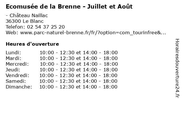| Dimanche | 10:00-12:30 et 14:00-18:00 |