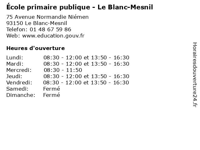 | Mardi | 08:30-12:00 et 13:50-16:30 |