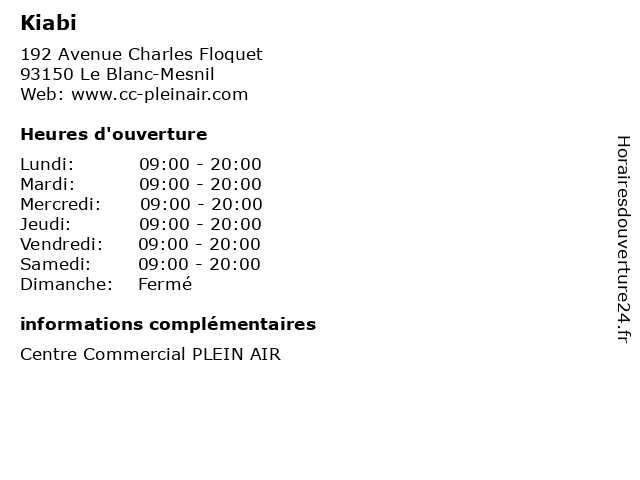 1 Kiabi (Distance: 4,01 km) n/a Avenue de Stalingrad, 95140 Garges les Gonesse baby, costumes, house, kiabi, kids, lingerie, men, shoes, women 2 Kiabi (Distance: 5,25 km) 3/5 rue de Paris, 93500 Pantin baby, costumes, house, kiabi, kids, lingerie, men, shoes, women 3 Kiabi (Distance: 7,29 km) 200 Avenue de la Division Leclerc, 95200 Sarcelles bébé, chaussures, costume, enfants, femmes, hommes, kiabi, lingerie, maison 4 Kiabi (Distance: 10,12 km) 67 avenue du Maréchal Joffre, 94120 Fontenay-sous-Bois beaute, boutiques, chaussures, deco, enfants, kiabi, mode femme, mode hommes, restaurant, sport 5 Kiabi (Distance: 10,26 km) 4 rue Camille Desmoulins, 75011 Paris accessoires, habillement, kiabi, mode, pret à porter, vetements 6 Kiabi (Distance: 13,73 km) 3 Boulevard Jean Monnet, 94350 Villiers sur Marne baby, costumes, house, kiabi, kids, lingerie, men, shoes, women |