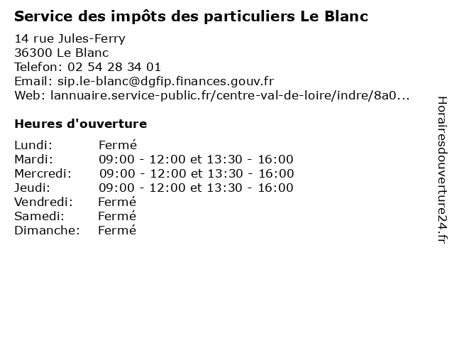 Termes de recherche pour Service des impôts des particuliers Le Blanc:le, blanc, des, administration, service, particulier, impôts, particuliers, etat |