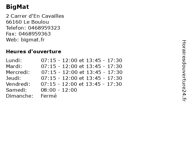 | Mardi | 07:15-12:00 et 13:45-17:30 |