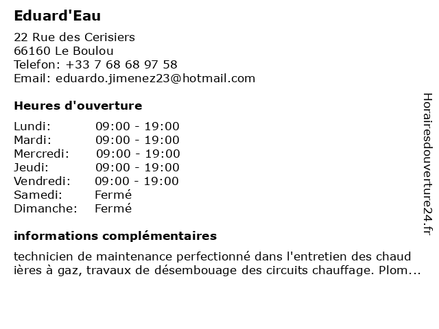 2 Mondial Piscines - Eau Piscines Service (Distance: 13,96 km) 3 rue Lô Pou Del Gel, 66450 Pollestres beton, eau, eau piscines service, exterieur, interieur, mondial, piscine, piscines, service 3 A l'eau Gouttiere (Distance: 14,72 km) 8 Rue de l'Artisanat, 66180 Villeneuve-de-la-Raho gouttiere, l'eau 4 Le Regal'Eau (Distance: 15,11 km) Plage du Lac, 66180 Villeneuve-de-la-Raho bar, bistro, bistrot, brasserie, café, le, regal'eau, restaurant, restauration 5 PLJ sarl "La maîtrise de l'eau" (Distance: 17,72 km) 6 Rue Ferdinand de Lesseps, 66280 Saleilles "la, de, l'eau", maîtrise, plj, sarl 6 Le Petit Rest 'Eau (Distance: 17,72 km) 3 résidence Acapulco, 66700 Argelès-sur-Mer 'eau, eau, le, petit, quattro, rest, restaurants |