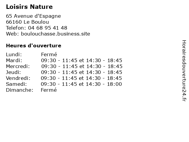| Samedi | 09:30-11:45 et 14:30-18:00 |