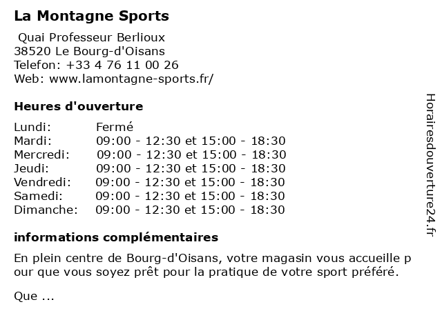 | Mardi | 09:00-12:30 et 15:00-18:30 |