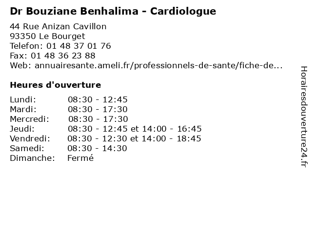 | Vendredi | 08:30-12:30 et 14:00-18:45 |